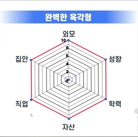 여성은 외모 하나만 좀 되도 의사에게 시집 가도 충분한 자격을 갖춘 것이고, 남성은 이거저거 모든 걸 다 갖춰야 예쁘고 능력 좋은 아내를 맞을 자격이 되는 것인가요? 이렇게 남성들에게만 엄격한 연애/결혼 문화는 남성들을 지치게 할 뿐이고 대다수의 남성들이 결혼을 포기하게 만듭니다. 6각형 인간이 되기가 어디 쉬운가요?